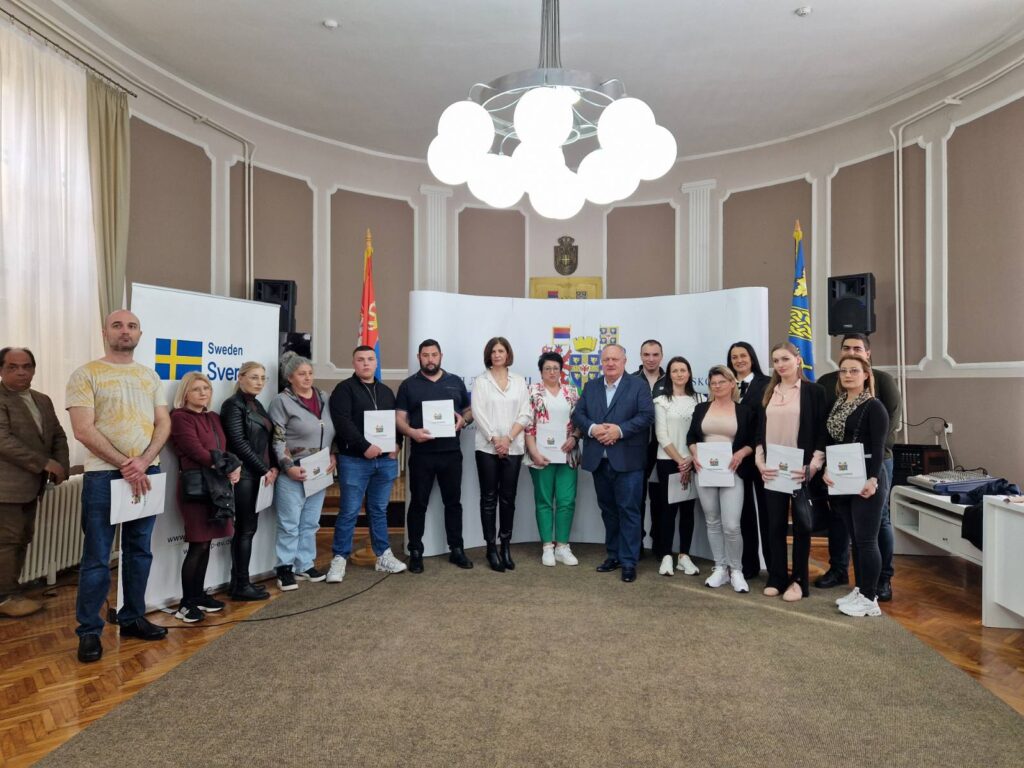 Ovim povodom, osam preduzetnica i četiri preduzetnika dobila su danas ugovore, kojima se predviđa podrška u opremi grantovima prosečne vrednosti 2.000 evra, dok dva granta od po 3.600 evra obuhvataju i obavezu zapošljavanja dodatnog radnika. Pored opreme, ova podrška uključuje i stručne obuke.