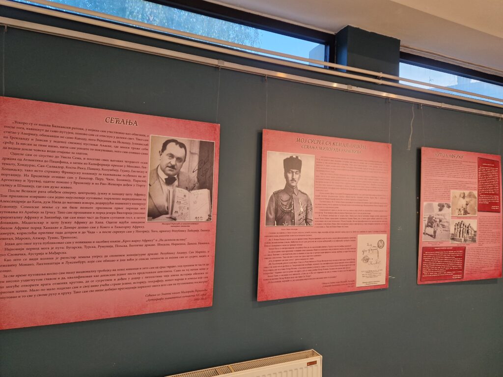 Na ukupno 30 panoa, predstavljena je njegova avantura kroz Srbiju, Afriku, Ameriku, Evropu, Japan i Mandžuriju, a autor izložbe je istoričar Goran Vilić, upravnik Muzeja “Jadra” iz Loznice.
