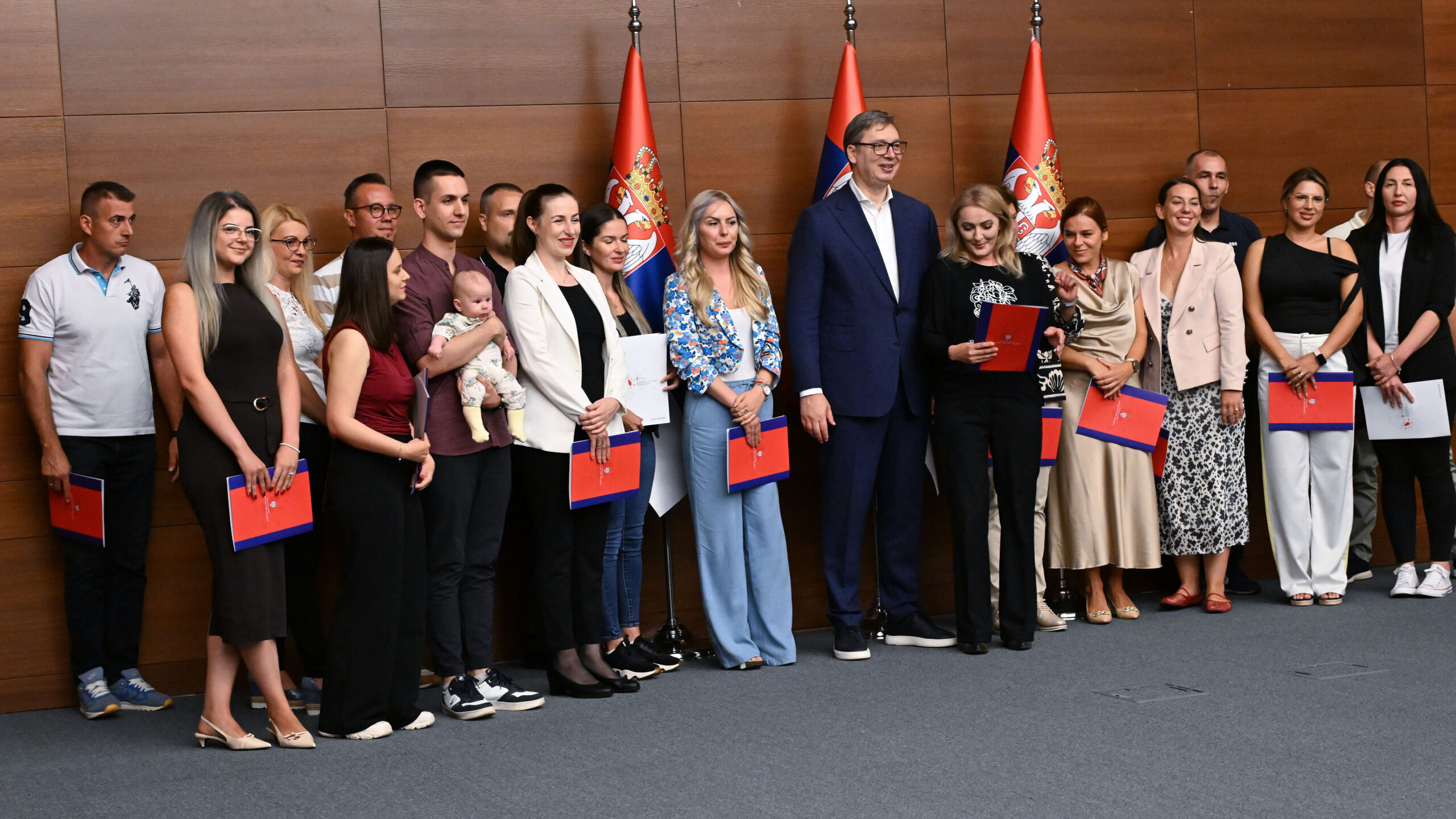 Mladi bračni par medicinski tehničar Luka Jovčić i njegova supruga medicinska sestra Zorica iz Leskovca, jedni su od 19 –toro njih koji su dobili danas ugovore o radu i koje im je uručio predsednik Srbije, Aleksandar Vučić.