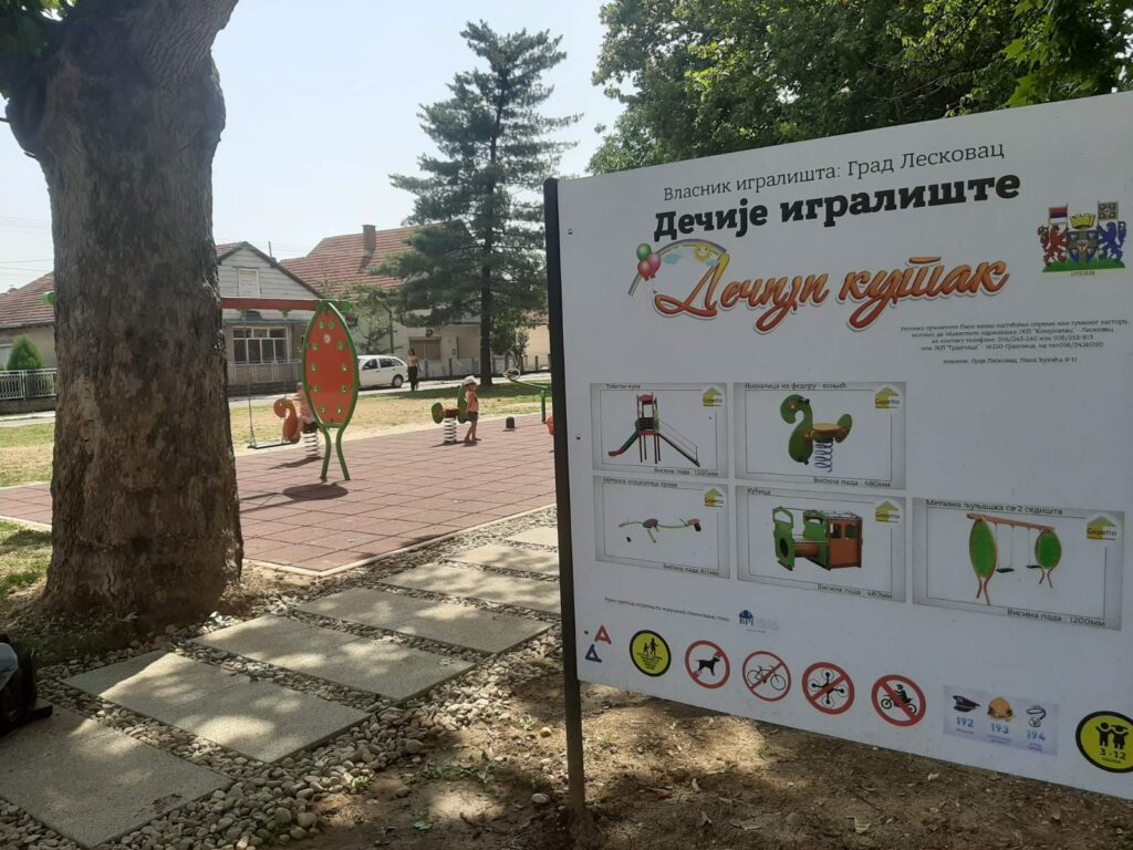 Od 2012. godine na području grada Leskovca izgrađeno je i rekonstruisano 18 igrališta, za šta je uloženo 60 miliona dinara. I u narednom periodu lokalna samouprava radiće na povećanju ovakvih prostora, a već sledeće godine slično igralište biće izgrađeno između blokova zgrada u ulicama Nikole Skobaljića i Ilije Strele, najavljeno je ovom prilikom.