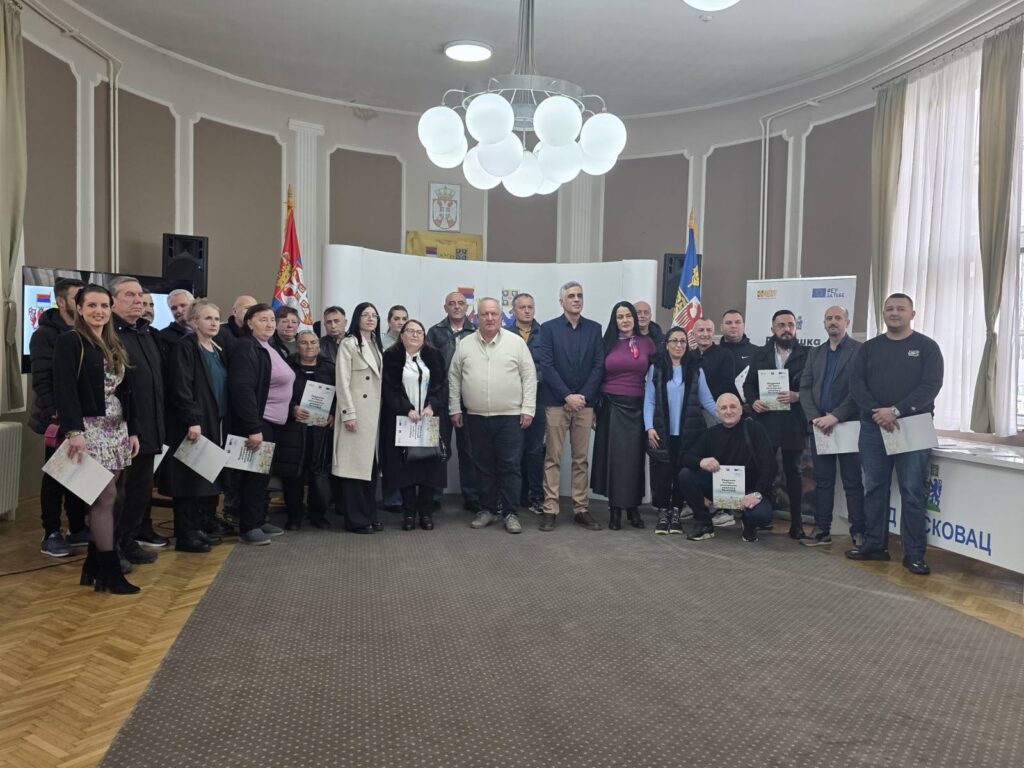 Ukupno 30 ugovora o dodeli grantova korisnicima u okviru projekta „Pružanje podrške interno raseljenim licima i povratnicima sa teritorije Grada Leskovca i okruženja“ uručeno je u Svečanoj sali Grada Leskovca.
