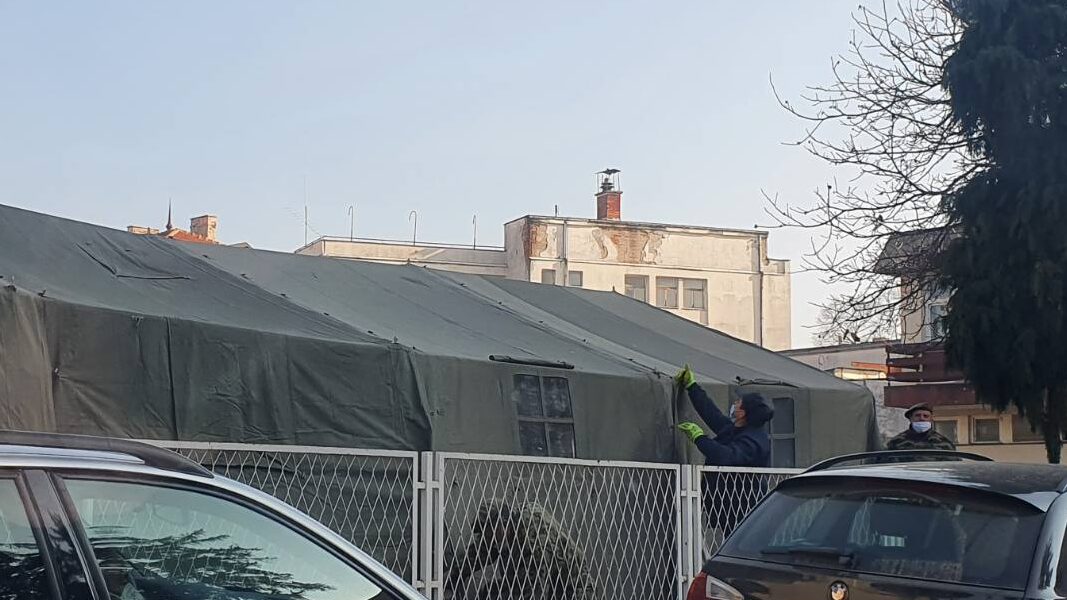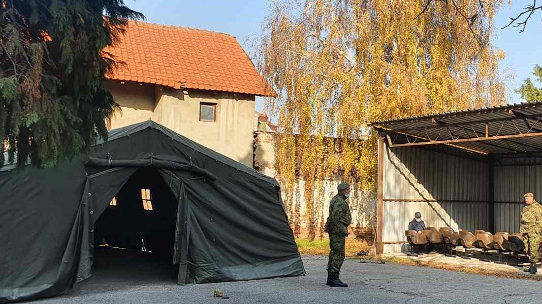 Prekoputa Kovid ambulante u Leskovcu, odnosno Zdravstvene stanice broj 3, Vojska Srbije postavila je danas šator za sve građane, to jest pacijente koji čekaju na pregled.