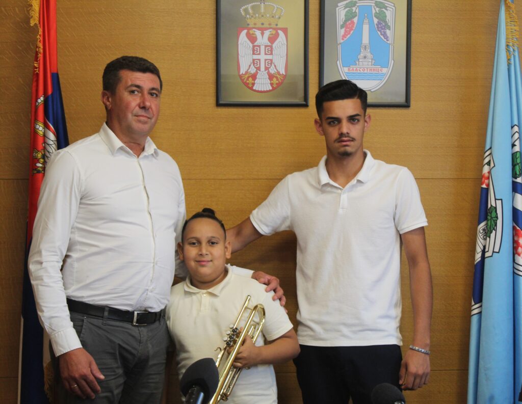 Predsednik opštine Bratislav Petrović primio je dvojicu trubača iz Vlasotinca, koji su na Saboru u Guči pre nekoliko dana osvojili nagrade: jedanaestogodišnjeg Mateju Stanisavljevića, najboljeg trubača omladinca i Davida Antića, čiji je orkestar osvojio drugo mesto 62. Dragačevskom saboru.
