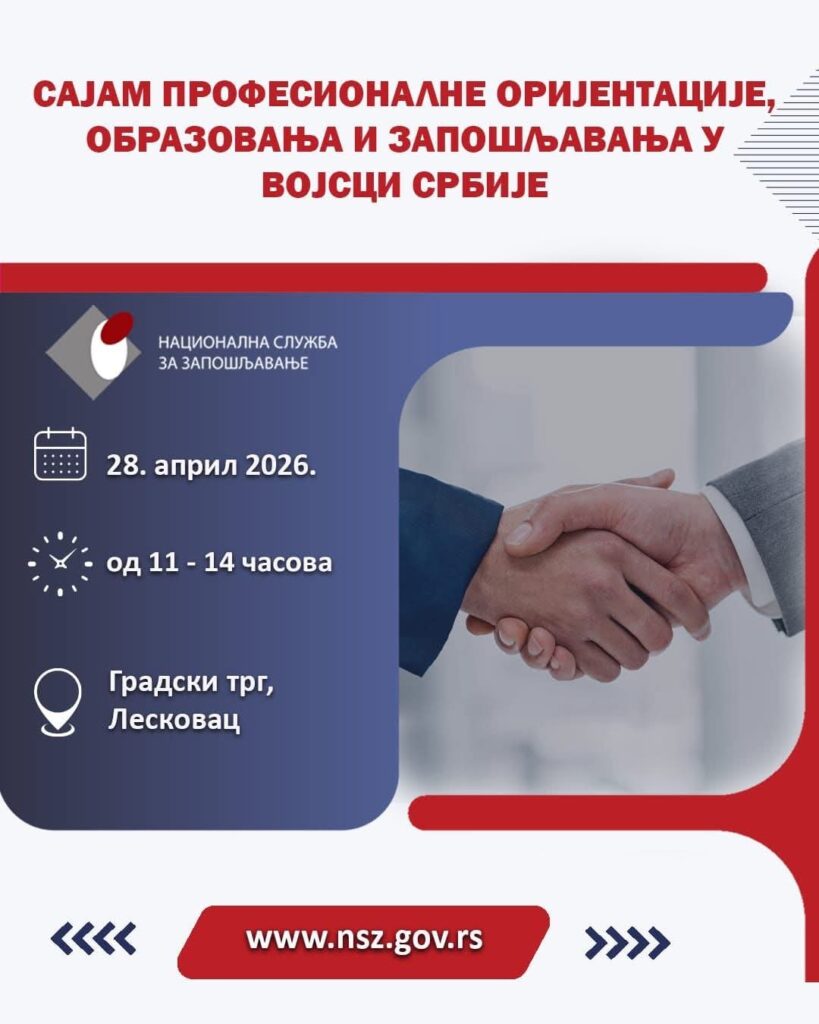 Povod za razgovor je Sajam profesionalne orijentacije, obrazovanja i zapošljavanja u Vojsci Srbije, koji će sutra, 28. aprila, biti održan na centralnom gradskom trgu u Leskovcu.