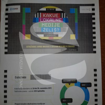 LESKOVAC – Prema istraživanju koje je radila Fondacija Slavka Ćuruvije koja inače radi na pripremi Medijske strategije Televiziju Leskovac gleda 92,2 posto ispitinaka što ovu kuću stavlja u sam vrh gledanih medija. Drugi mediji po gledanosti je TV Studio MT sa 11,2%, i TV K1 sa 10,5 % ispitanika. Inače, ljudi sa ovog područja se najviše od svih medija informišu preko Televizija.