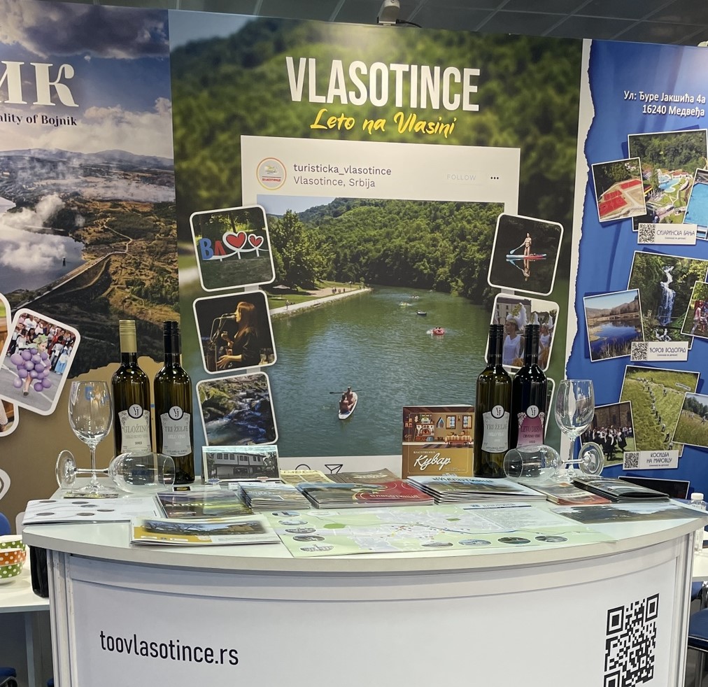 Vlasotinački štand je u okviru zajedničkog izložbenog prostora pod nazivom Južna pruga, na kome se predstavljaju Vlasotince, Bojnik, Medveđa i Visoka poslovna škola iz Leskovca.