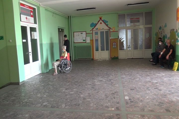 Ispred ulaza Odeljenja za hematologiju, onkološki pacijenti koji primaju hemoterapiju, čekaju da dođu na red.