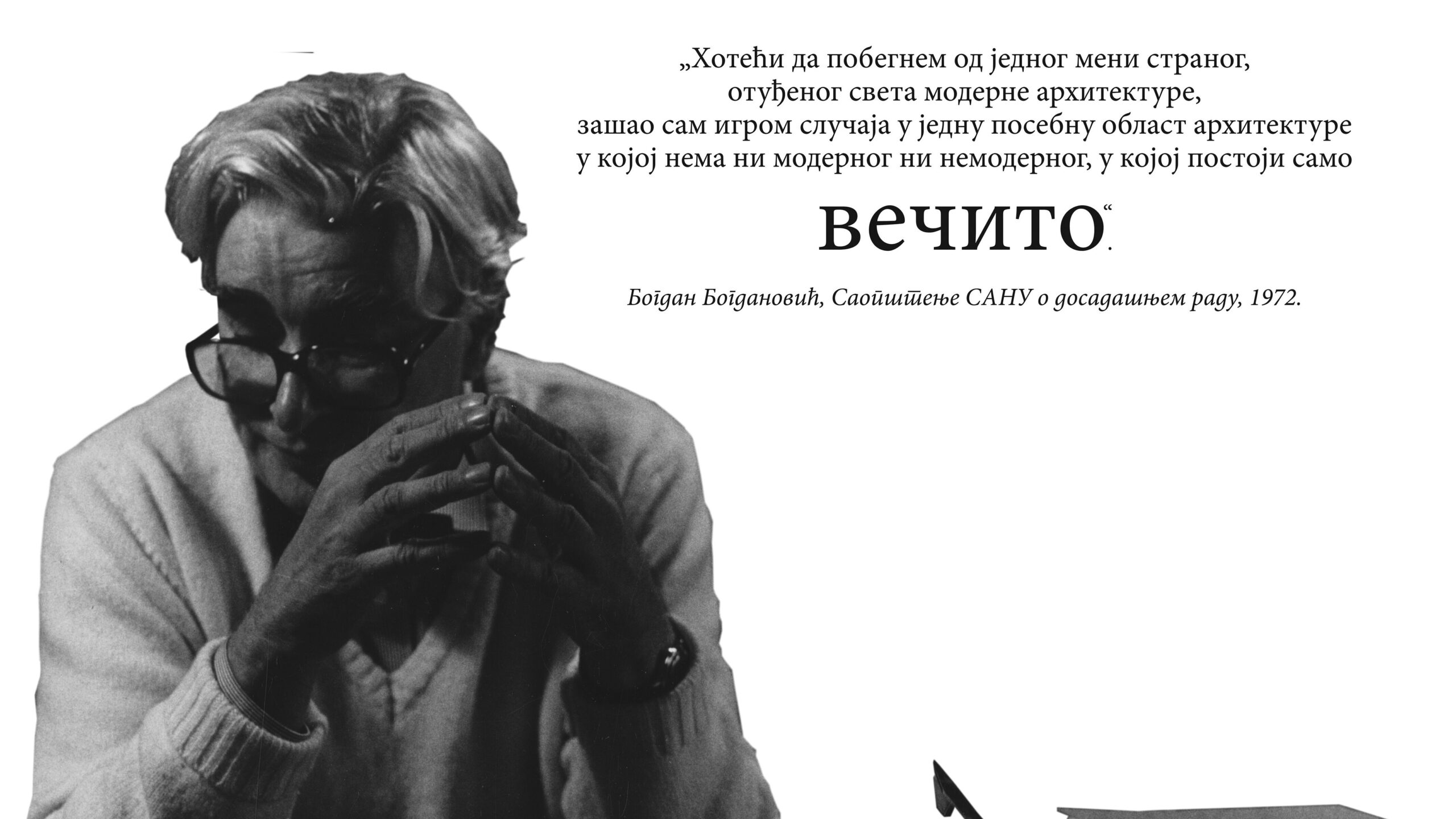 Velika retrospektivna izložba „VEČITO“, posvećena stogodišnjici rođenja velikana srpske i jugoslovenske arhitekture, Bogdanu Bogdanoviću (1922. Beograd – 2010. Beč), nakon beogradske premijere prošle godine, nastavlja život u Galeriji Kulturnog centra Vlasotinca u kome otvara manifestaciju „VEČITO“.