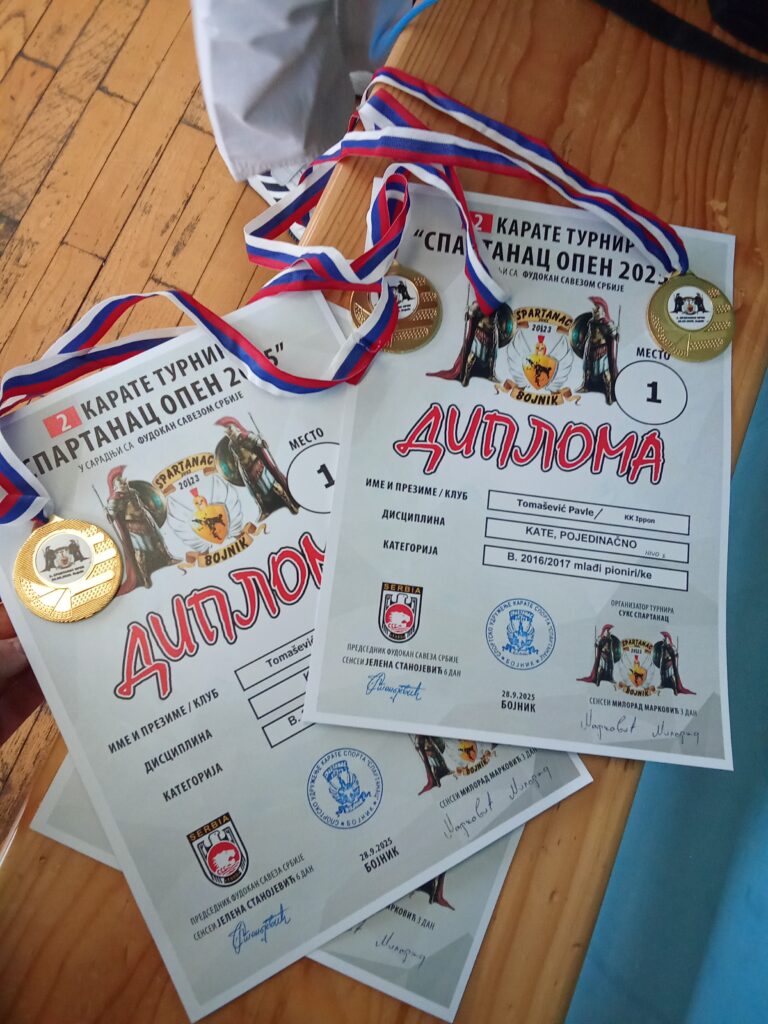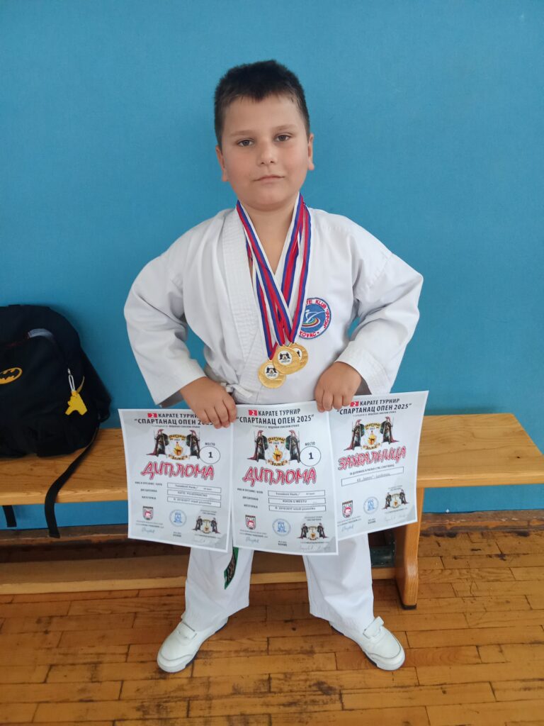 Mali šampion takmičio se u tri discipline – tehnike u mestu, kate i borbe – i u svakoj od njih pokazao neverovatnu smirenost, disciplinu i odlučnost. Njegov trud nagrađen je sa tri zlatne medalje, čime je Pavle još jednom potvrdio da u Leskovcu stasava nova generacija mladih sportskih talenata.